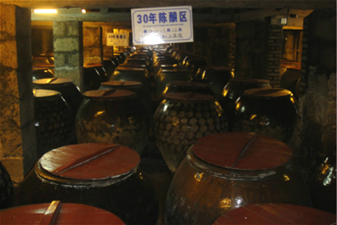接著在講解員的引導下林副市長一行人來到了我們的窖藏車間,在感受了迎面撲來的濃濃的醋香以及驚嘆醋窖的規(guī)模后,林副市長充滿好奇地詢問了關于窖藏車間的由來。下面是講解員的介紹:“永春老醋窖藏車間始建于1953年,為永春釀造廠創(chuàng)始之時,模擬民間家傳老醋的釀制條件而建。主體為木質(zhì)結(jié)構(gòu)樓房,底層為半地下室環(huán)境終年恒溫恒濕;所有的醋缸都是當時從民間收集而來,數(shù)量超過3000個,至今已有五十多年的歷史。像這樣采用陶制醋缸在半地下室的環(huán)境中按照傳統(tǒng)工藝釀醋的在全國只有永春老醋一家,其他老醋即使有醋缸也用純手工釀造,但他們都沒有這種半地下室的發(fā)酵環(huán)境。所以永春老醋的窖藏車間是全國唯一獨有的。由于陶制醋缸,口小壁薄,容量大,散熱快,所以比較適宜有益微生物菌群的生長和繁殖。然后在這種靜態(tài)環(huán)境中將紅酒中的酒精和營養(yǎng)成分轉(zhuǎn)化成醋酸和其它香味物質(zhì),使醋酸菌充分發(fā)酵。再加上采用獨特的液態(tài)深層發(fā)酵的傳統(tǒng)工藝,紅曲酒分期分批地添加到不同年份的醋缸中發(fā)酵轉(zhuǎn)酸,接著不同年份的發(fā)酵缸逐年交替分割取醋,之后再添加炒熟的芝麻增香陳釀;最后會有專門的釀醋師傅每天手工攪拌、分割和補料。所以采用陶質(zhì)醋缸,在恒溫、恒濕的窖藏環(huán)境中按照傳統(tǒng)工藝生產(chǎn)的永春老醋歷經(jīng)數(shù)十年流轉(zhuǎn)陳釀,酸香醇厚,品味精絕,乃醋中極品,值得典藏。.jpg)