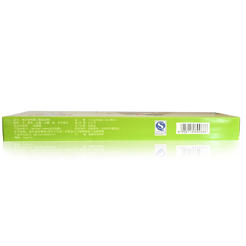 選用陳釀多年的永春老醋(液態(tài)發(fā)酵,純糧釀造),輔以優(yōu)質(zhì)的濃縮青蘋果汁佳釀?wù){(diào)制而成。酸度3.5,其口感酸甜,果香濃郁,清爽可口,美味好喝,而且無需防腐劑??芍苯语嬘没蚣铀⒎涿巯♂岋嬘?,也可用于涼拌沙拉、佐餐調(diào)味、調(diào)制果醋飲料等。